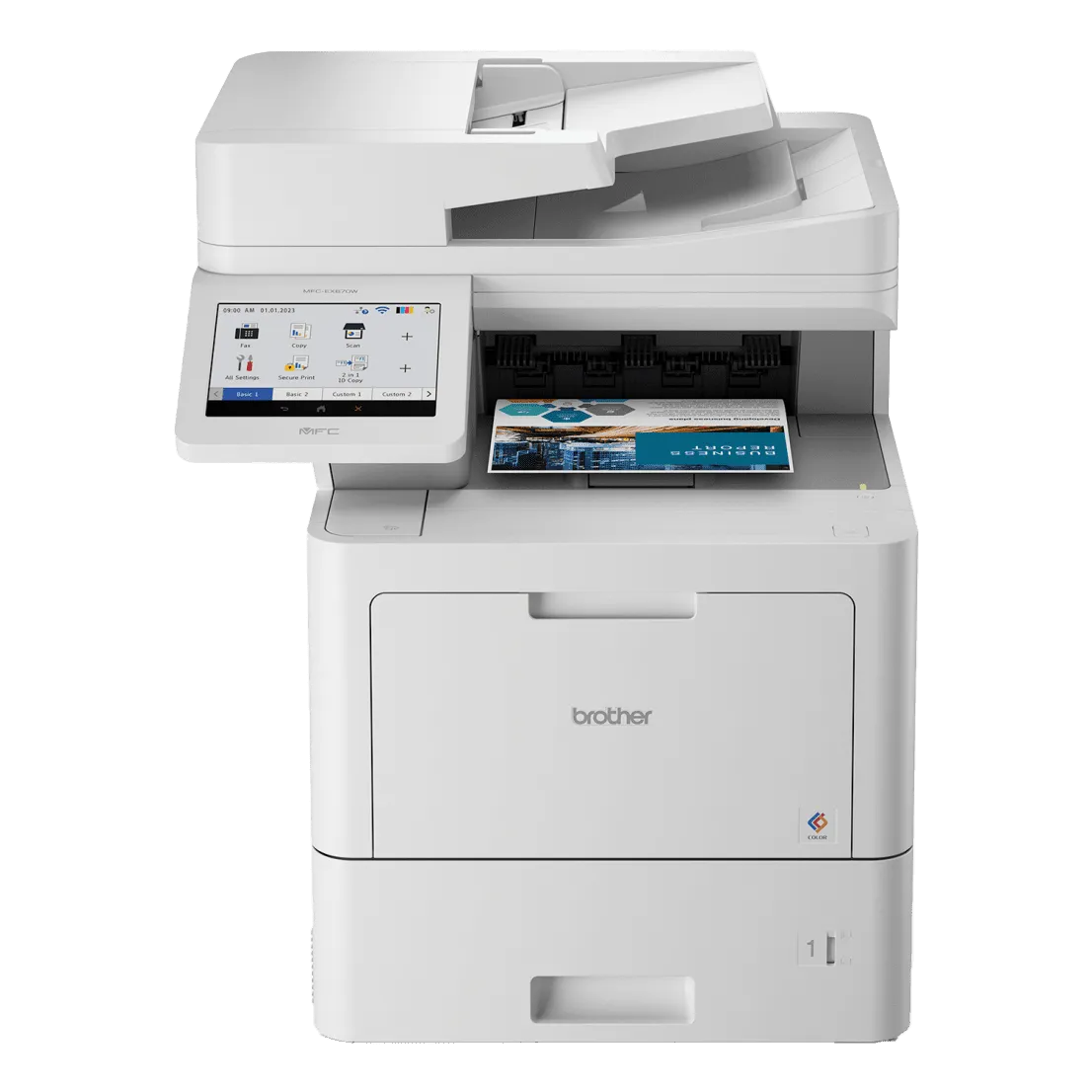 The Brother MFC-EX670W B&W Multifunction Printer delivers exceptional performance and versatility for busy offices that need more than just printing. This all-in-one workhorse combines fast, high-quality printing with powerful scanning, copying, and faxing capabilities — all in a compact footprint. With print speeds up to 42 pages per minute, robust Wi-Fi, Ethernet, and mobile connectivity, and a large, expandable paper capacity, this device keeps your workflows running efficiently. Designed for high-volume use, it supports optional high-yield toner cartridges to reduce cost per page, while advanced security features help protect sensitive business data.